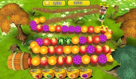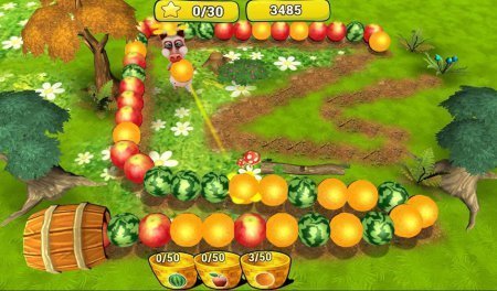 Farm Blast 3D интригующая казуальная игрушка, которая отдельно напоминает тебе знаменитую игру Зума. В представленном проекте тебе нужно помогать домашним питомцам, убирать созревший урожай фруктов и овощей. Определи для себя более классного героя и копите одинаковые фрукты в цепочку для того чтобы они пропали и освободили местечко для иных. За собранные фрукты и овощи ты будешь принимать звездочки и поощрения, которые возможно улучшить и приумножить. Игрушка полюбится не только деткам, но и взрослым из-за разнообразных героев и широкому перечню фантастических ступеней, которые в проекте свыше сотни. Играй и получи удовольствие от красивой графики и незатейливого геймплея. Игрушка сохраняет русификацию.