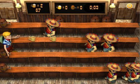 Бармен II. Новые приключения / Barman II. New adventures – игра является довольно простой, но невозможно интересной. Задача игрока состоит в том, чтобы каждому гостю успеть принести напиток, ведь всех посетителей мучает жажда. Необходимо это все сделать очень быстро. С каждой секундой людей становится все больше и больше. Быстро наливайте в стаканы напитки и не забывайте о чистоте в зале, а также о пустых стаканах. Используйте хитрость и все свои умения в этой области, чтобы стать мощным барменом. Играйте и побеждайте. Русский язык: нет.