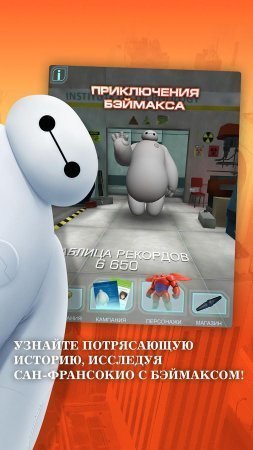 Big Hero 6: Baymax Blast – привлекательный раннер от Disney разработанный по мотивам знаменитого мультфильма 'Город героев'. Проследуй в занимательное перемещение напору с представленным героем по здравоохранению Баймаксом. Одень его в защитный костюмчик и просмотри все улочки Сан-Франциска отыскивая частички похищенных микроботов. Справляйся со всеми сложностями на собственной дороги, накопите достойный перечень очков, для того чтобы раскрыть новеньких персонажей, которые знакомы тебе из мультика и изучи привлекательный клип, предложенный разработчиками. Улучшай собственных персонажей в лаборатории, давая им новенькие клевые навыки, и накопите занятные рассказы о каждом из возможных героев.