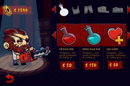 Chainsaw Killer -- неимоверный платформе на базе андроид, в нем тебе в роли сумасшедшего ученого необходимо устранять людей. Данный ученый получил новенькое зелье и принял решение испытать его на себе, но так сложилось что после такого зелья он не в силах себя контролировать. Взяв в свои руки страшную бензопилу, он идет на охоту, помоги ему справиться собственным гневом, устранив при этом массу людей и не оказаться в страшной ловушке в облике злобных собак и подрывающихся мин. Это веселенькая игрушка с простеньким сенсорным руководством, парой разнообразных миров и шансом использовать удары комбо. Играй в данную игрушку и соперничай с дорогими товарищами в сетях социального типа.