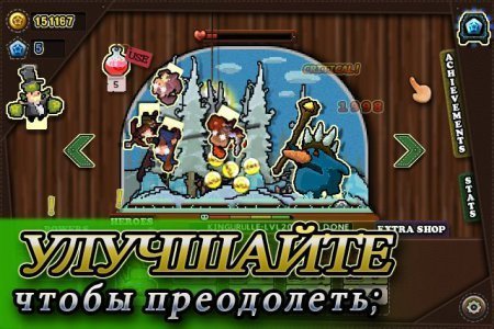 Tap Heroes для андроид это стандартный киллер, исполненный в облике ролевой игрушки с интересным эпическим развитием сюжета. Для тех, кто не знает такой тип жанра нужно сказать, что их предшественником выступила игрушка, которую прозвали Cookie Clicker и не обращая внимание на собственный незамысловатый процесс игры заполучила просто фантастический успех. Данные кликеры тщательно развивались и начали быть полноценными аркадами и наша представленная игрушка вот именно из таких. В Tap Heroes тебе важно проследовать в эпическое перемещение свыше чем по десяти разноплановым мирам по дороге само собой борясь с группами противников, которых можно увидеть свыше семидесяти типов. Механика игры цельно соответствует стандарту жанра, жми по дисплею и таким образом зачищай противников разносторонними вариантами ты улучшаешь собственного персонажа, перебираясь на ступень выше и там возникают более мощные противники и тому подобное. Если говорить об исполнении, то игрушка представлена в хорошем стареньком стиле.