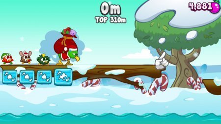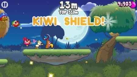 Kiwi Run -- занимательная пташка Киви очень сильно любительница поесть вкусных фруктов. В приставленном проекте ты торопишься вперед, знакомишься с различными жителями леса, накапливая по дороге важные частички, которые понадобятся тебе для украшения твоего гнезда. И стремись пройти так далеко как уже увы не кому не удавалось забежать. Накапливая поощрения, ты существенно упростишь себе жизнь -- черепашка поможет, если свалишься в воду магнит магнитик подтащит все ягодки те что есть вокруг, а вот самолёт поможет ощутить эмоции полета.