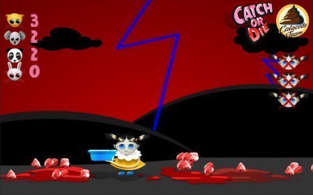 Catch or Die если тебе по душе животные, и ты желаешь их уберечь от страшной гибели то данный проект Поймай либо умри именно для тебя. В данном проекте ты в качестве девушки будешь ловить в корзину падающих котят, панд, коал, но будь предельно осторожен, с небес на тебя могут сыпаться не маленькие свинки и какашки вот как раз их ловить ни в коем случаи не нужно. Помоги падающим зверькам и слови их в корзину, так как если это не случиться они разнесут себе голову. В самом начале проекте тебе будет предоставляться три жизни, с каждым упущенным зверем жизней будет становиться все меньше, а если они и вовсе окончатся, то тогда тебя переедет мощных грузовик. Так что вот такая занятная игрушка, так что помогай зверям и не бросай в такой не простой ситуации.