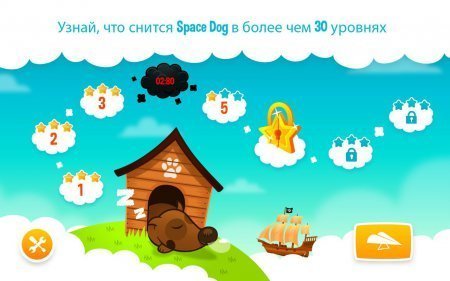 Space Dog Journey удивительное перемещение на пару с псом Space Dog и его товарищем Цыпой. Данный пес фантазер и как только ори приняли решение поспать во сне ему почудилось что он руководит придуманным летательным аппаратом и уходит от преград на собственной дороге. Помогай данному персонажу накопить многочисленные поощрения и руководить летательным средством таким образом, чтобы не встретиться с преградами. Исполни все указанные перед тобой задачи и заверши их легкой посадкой на землю так сказать пружинив на Цыпе. Раскрой для себя свыше тридцати степеней и неимоверное количество летательных аппаратов, а еще помни что нужно крутить колесо удачи и выигрывать поощрения.