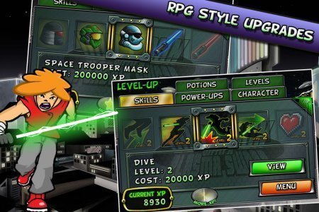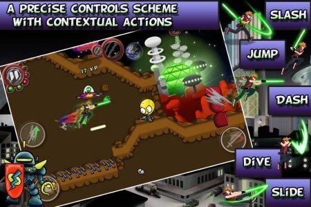 Don't Run With a Plasma Sword -- это подвижный платформер на системе андроид с частичками экшена. Полоса сюжета занятная -- такой себе продавец в магазине комиксов явно пересмотрел данный тип литературного движения и придумал что он супергерой. Так вот над миром нависла серьезная угроза -- нападение инопланетян. Это самое что ни есть лучшая возможность, показать всем что он таки реально что-то может. Для такой цели персонаж разработал плазменный меч и проследовал устранять пришельцев с каждой улочки. Парочка игровых режимов и пять локаций, а еще простое руководство принесет радость любому пользователю. Игрушка не имеет русификации.