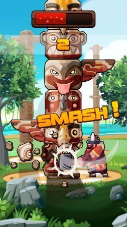 Totem Smash достойный тайм-киллер на андроид, в котором ты будешь помогать большущему викингу ломать тотемы. Данный персонаж викинг приплыл на неизученные ему территории и заметил тотемы с неизвестными богами, а затем берет в руки молот и начинает крушить их поочередно стараясь убрать их всех. Помогай ему в таком не простом вопросе. Ломай все больше и больше представленных тотемов и накопи достойные перечень баллов, для того чтобы перебраться на дальнейшую ступень. Это длительная игрушка так как чем больший перечень устраненных тотемов, тем больше их возникает вновь, так что запасись сил и терпения для того чтобы завершить данную игрушку набрав достаточный перечень баллов.