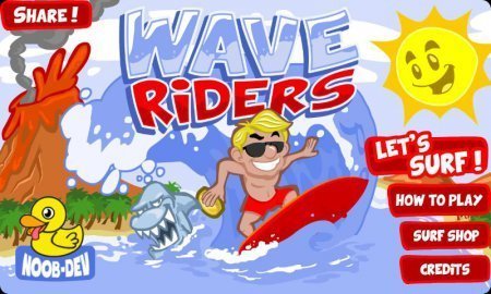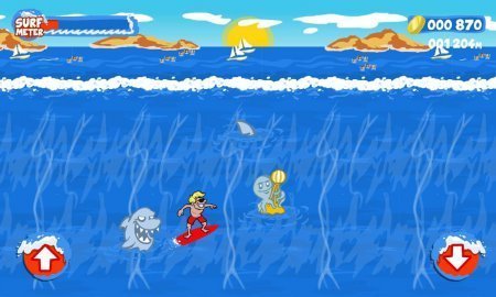 Wave Riders -- занятная игрушка на базе андроид, в ней тебе важно руководить серфингистом. твой отважный персонаж несется по волнам на любимой доске и проворачивает неимоверные фишки. Помогай ему справиться со всеми сложностями на собственной дороге в облике злобных акул, птиц и прочих сложностей, а еще копите золотые денежки и поощрения. Перемещайся на доске для серфинга и на мощном гидроцикле и принимай мощь бога серфинга. Покупай амуницию и на имеющиеся денежки и интересные костюм для персонажа. Двигайся по большущим волнам и иди все вверх по лидерской табличке, достигая самых лучших результатов. Играй и принимай удовольствие от проекта.