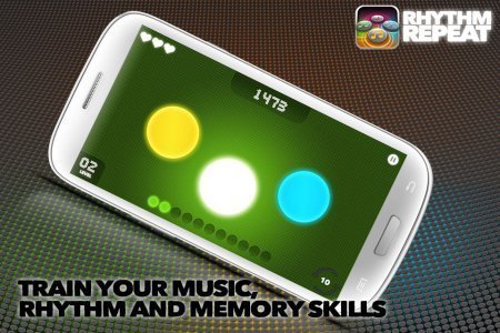 Rhythm Repeat - манящая музыкальная игрушка на андроид, поклонникам музыки будет по душе. В данном проекте тебе важно смотреть за тем как загораются цветные кнопки, и повторять в той же цепочки для того чтобы получить мелодию. Игрушка качественно тренирует память и развивает твои таланты в музыке. Преимущества -- триста интересных мелодий и тактов, три ступени сложности. Три музыкальных инструмента. Экстремальный формат лихорадки, которые непременно преумножит твои баллы. Завораживающие визуальные эффекты. Проект не имеет русификации.