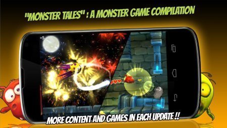 Monster Tales -- своеобразная трилогия на аndroid, состоящая из трех небольших игр. Одна из них аркадного типа, где ты будешь руководить драконом, который летает по разноплановым мирам и бороться с разносторонними противниками. В иной тебе будет нужно подрывать фейерверк, но таким образом, чтобы он не прикасался представленной стены, на которой размещен монстр. Проект не владеет возможности русификации.