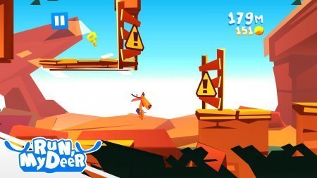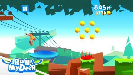 Run, My Deer -- проект на платформе аndroid, в котором тебе важно будет руководить передвигающимся оленем. Это привлекательная игрушка с крутой графикой и непростым героем, где ты будешь бегать, скакать и летать в мыльном пузыре над всеми возможными преградами. Примени батут для скачков и помни что нужно копить золотые монетки. Преимущества -- три мира, четыре типа противников, шесть улучшений. Красочная графика, параметры поощрений. Проекту не досталась русификация.