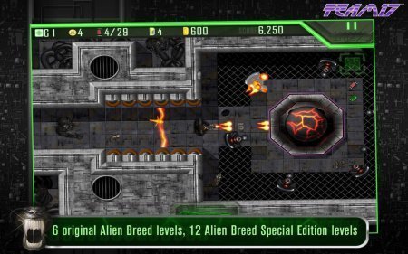Alien Breed -- стандартный шутер в тематики научно фантастического типа. Проект старенький 1991 года происхождения, и только вот в этом году он оказался на платформе андроид. Первые тридцать ступеней ты способен сыграть в нее в изначальном варианте -- вид сверху, ты передвигаешься и убиваешь группы монстров. В расширенном варианте у тебя имеется четыре ступени и совершенно иная графика и игровой геймплей. В общем игрушка заслуживает твоего внимания и заинтересует поклонников тематики.