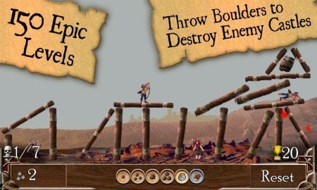 Castle Clout - игра на системе андроид, в которой тебе важно снести замок с применением катапульты. Окажись в средних веках и с применением валуна, гранат и массы прочих приспособлений устраните всех противников. Ты способен причинить не мало разрухи если верно выберешь цель и угол поворота самой катапульты. А еще ты легко можешь расширить собственное царство, выстроив дворец с применением редакторов ступеней. Преимущества -- легкое руководство, свыше ста пятидесяти ступней. Двенадцать определенных навыков. Пять противников героев и один дружелюбный. Шесть точных фонов.
