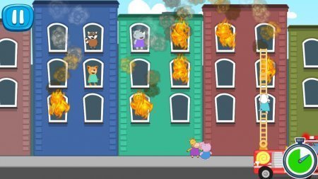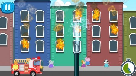 Kids Fire Patrol – занимательная игрушка на правленая на деток, в которой они испробуют себя в облике пожарного. В данной игрушке твой ребенок на пару с Гиппо Пепе будут проводить тушение пожара, и помогать тем жителям, которые оказались в страшной ситуации. Все детки любят мультики с пожарными и героями, теперь предоставлен шанс быть таким из героев. Слышится звук сирены, это означает, что пришло время собираться и приступать к тушению пожара. Руководи пожарной машиной и пройди с ней отрезок пути по городу, уклоняясь от аварий с преградами на своей дороге. Еще помни, что в машине всегда должна быть вода. Оказавшись на месте горения, помоги в самом начале проживающим данного дома убраться с места трагедии, а только потом начинай само тушение пожара. Нужно все совершать очень быстро иначе будет не поправимое.