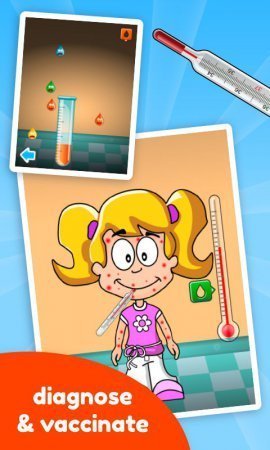 Doctor Kids / Детский доктор – игра создана не только для детей, но и для взрослых она будет интересна. В данной игре не имеется сцен с насилием, страшных монстров и нет никаких страшилок. У многих детей есть мечта стать врачом, так вот данная игра подойдет именно для таких детишек. Занимайтесь лечением детей с разными болезнями, проходите множество мини-игр, занимайтесь развитием своего малыша в такой важной области как медицина. Особенностями игры является: доброжелательный сюжет, помощь детям, яркая графика, большое количество кабинетов. Русский язык: нет.