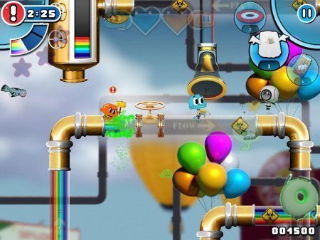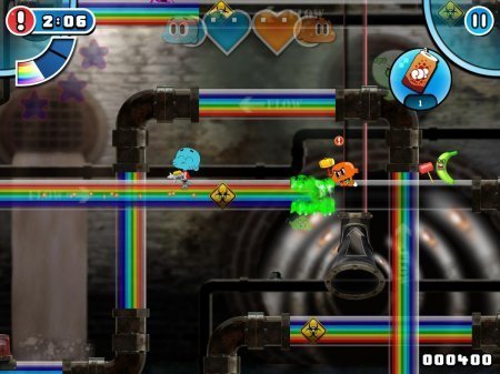 А вот и очередное детище Cartoon Network студии – современная аркадная игра с элементами головоломки - Gumball Rainbow Ruckus. Все события происходят в сказке, в пространстве Элмор. Злой персонаж - дух ревности выкрал радугу. Он спрятал ее в темном и сыром подземелье. Ваша задача вернуть краски радости в мир, освободить радугу и наказать духа ревности. Чтобы воцарилось равновесие и гармония, радуга должна выбраться из-под земли. Вы поможете ей пройти сложными и опасными лабиринтами канализационной магистрали. Но знайте, зло так просто не сдается. На вашем пути будет масса трудностей, опасностей и непреодолимых преград. Так как вы играете сразу двумя персонажами, не забывайте о том, что они имеют неординарные способности. Их обязательно нужно использовать, чтобы выиграть. Игровой процесс будет требовать максимальной логики, скорости и риска. Графика игры поражает яркостью, но это не удивительно, ведь по сути это мультфильм. Русский язык: в наличии.