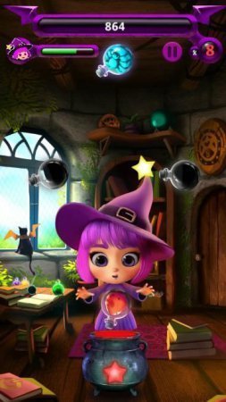 Perfect Potion – в данной игре у тебя просит помощи, небольшая колдунья которую зовут Миневра и ее дорогая кошечка. Героиня желает стать самой популярной колдуньей, которая изготовляет самые вкусные конфетки во всем колдовском царстве. Но чтобы уметь делать конфеты, юной даме необходимо выучить и сделать все зелья из ее любимой колдовской книги, но увы у нее ничего не выйдет без твоей помощи. Преимущества проекта – примерно семнадцать разнообразных уровней, парочка игровых режимов проекта, совершенно индивидуальные наклейки для каждого из рецептов, качественная графика, поддерживает как смартфоны, так и планшеты. Игрушка не русифицирована.