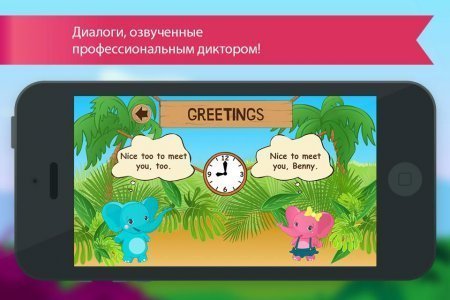 Шикарный английский для деток с Бенни на системе андроид – игрушка в которой классный слоненок по имени Бенни и его товарищи помогут небольшим деткам в познании английского языка. Твоего ребенка ожидает уйма занимательных занятий, в которых они будут непосредственно обучаться в формате игры английского языка. Преимущества – изучи английский язык в простенькой форме игры, представлено четырнадцать тем - числа, пища, фрукты, окрасы, приветствие, родственники, звери, дом, игрушки, одеяние, частички тела, природа, средства передвижения ну и посуда. Легкое руководство, занимательные обучающие диалоги, запись выговора слов, которые представлены носителем английского языка. Достойная графика и отменная музыка.
