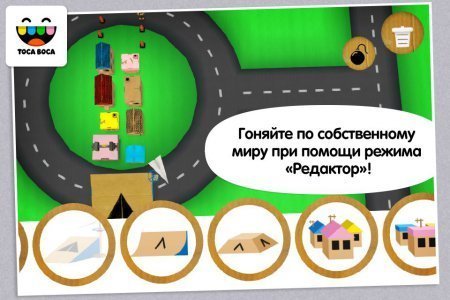 Toca Cars -- проект на системы андроид, в котором ты отправишься в неимоверном мире исполненном из картона. Ты водитель и у тебя совершенно нет никаких указаний ты можешь перемещаться где желаешь и как желаешь -- по лугам, которые состоят из растаявшего морожена, лететь с представленных трамплинов, ломать светофоры, здания и почтовые коробки. Одним словом, все что тебе встретиться на дороге, и не волнуйся все возможно будет восстановить одним прикосновением на клавишу. А еще с применением редактора деталей горки и трамплины для скачка. Преимущества -- пара водителей, возможно ездить как по трассе, так и за ее пределами. Собери собственный мир на свое усмотрение. Круши и восстанавливай так как все возможно отремонтировать клавишей. Хороша для деток от трех до девяти лет. Достойный для леток интерфейс.