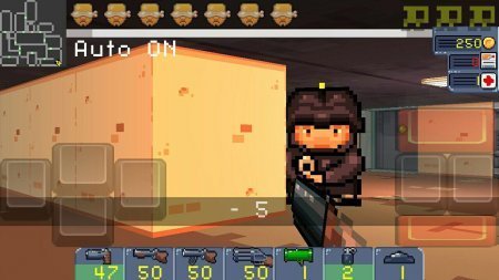 Как указывалось выше, здесь вам понадобится спасать заложников и действовать «от первого лица». Вы работаете в спецназе под псевдонимом Пиксельштейн. Вашей задачей является поиск и освобождение людей от захватчиков. Враг укрепил свои позиции в военном комплексе, поэтому вам придётся попотеть. Предварительно вооружившись, начинайте штурмовать цитадель. Врывайтесь в парадный вход и убивайте стоящих на пути врагов.