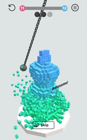 Игра позволяет провести досуг за интересным делом. Разрушение объектов выглядит довольно эпично. Физика игры проработана на ура. В зависимости от угла и силы удара кубики будут реагировать по-разному. Хотя точность нанесения удара всё же играет большую роль, нежели его сила. От точного касания все кубики содрогнутся и, потеряв опору, упадут вниз.На каждый объект даётся достаточное количество попыток. Однако смысл игры в том, чтобы попробовать пройти уровень за 1 толчок ядра. Потренируйтесь, прежде чем сделать это. Не переживайте – стартовать заново вы всегда успеете. Нанесите удар по слабым местам фигур – не дайте им устоять!