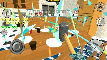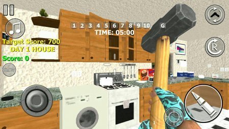 Бейте всё вокруг вас. Пользуйтесь оружием для прохождения разнообразных уровней, имеющихся в игре. Разрушьте дом и всё, что в нём находится с помощью ножей и огнестрела. Каждый обнаруженный предмет должен быть немедленно уничтожен. За это вам будут начисляться баллы. На завершение уровня даётся 5 минут. Если за это время вы не успеете сломать всё, вы считаетесь проигравшим. На самом деле, выполнить такое задание не составит особого труда.Для разрушения вам будут предлагаться различные локации: общественные заведения, частные дома. Бороться придётся также и со злобными соседями. Дайте отпор агрессивным бабушкам с битами и надоедливому соседу. Для уничтожения объектов можно использовать не только топоры, молотки и кувалды, но и автоматическое оружие. Парочка desert eagle собьёт спесь с любых выскочек. Но можно воспользоваться и другими пушками – в игре их полно.
