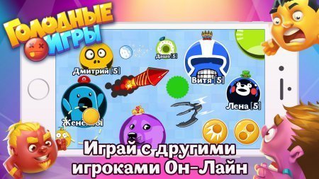 Yummy: Hungry Games – завораживающая игра на выживание. В игре действует принцип или ты, или тебя, ты попадаешь в огромный мир, заполненный разными смайлами, ты должен поедать все что меньше тебя. Больше съеденных шаров больше твои размеры ты будешь расти, тем самым достигай самого большого размера и уровня и перемещайся по планете. Выбрав подходящий смайлик, отправляйся с ним в увлекательное путешествие. Получай максимум восторга от игры благодаря сочной и яркой графике, играй со своими друзьями в виде команды смайликов.