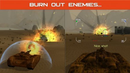 Tank Combat: Future Battles – игрушка на систему андроид, которая отправит тебя в новое будущее, где тебе необходимо бороться за собственные территории. В данной игрушке те окажешься в неимоверном мире неимоверной планеты, которая находиться под расколом огненного сражения. Садись в личный танк и руководи замечательной машиной, веди ее только вперед и устраняй всех соперников, которые станут на пути. Исполняй все указанные задачи и наноси удары как можно большему количеству танков врагов, выигрывая их не численностью а тактически просчитанными действиями. За каждый устраненный танк тебе будет начислено вознаграждение, которые ты можешь потратить на приобретение новенькое снаряжения для собственного танка или купить более мощный танк.