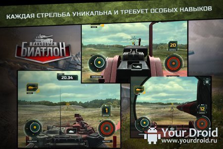 Хотите попробовать? Тогда советую прямо сейчас скачать Танковый Биатлон на андроид планшет, ознакомиться с правилами, отправиться на тренировочные, а затем боевые стрельбы. По управлению танк, как машина. Четыре клавиши – стандарт управления боевой машиной или автомобилем в android симуляторе GTA: город San Andreas – сага гангстеров.