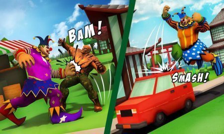 Creepy Clown Attack – руководи большущим клоуном, который передвигается по улочкам городка и ломает все вокруг себя. В данной игрушке ты возьмешь под собственный контроль клоуна, который передвигается по широкому мегаполису и устраняет все что видит на собственной дороге. Данный клоун умеет неимоверную силу и способен с единственного удара битой легко перевернуть автомобиль. Погрузи данный большущий мегаполис в хаос и исполняй массу сложностей, которые тебе приготовила игра. Наноси удары на полицейские автомобили и прочих противников, которые жаждать вас остановить и устраняй их. Ломай все что видишь на дороге и вынуждайте проходящий людей бежать от тебя. Одень собственного клоуна в разнообразные костюмчики.