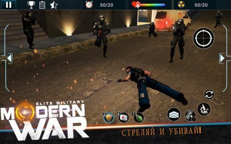 Elite Military Modern War – в данной игрушке ты будешь играть за солдатика замечательного подразделения данной страны. Твоему отряду пришло задание, чтобы вы оказались на территории противника и совершили диверсионный рейд и возвратились назад с важными данными, а по возможности даже и с золотком. Преимущества игрушки – масса орудия, масса широких локаций, от закинутого завода до местности городского типа, широкий перечень противников, красочная графика, занимательный эффект звука и довольно реальные условия погоды.