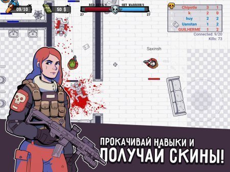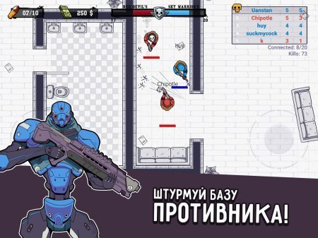 Присоединитесь к отряду мужественных солдат в многопользовательском онлайн-шутере SketchWar.io. Вам предстоит сделать выбор одной из сторон противостояния солдат Red Devils или же Sky Warriors, которые не сошлись во мнении. Постарайтесь найти себе персонажа, который значительно превозмогает остальных бойцов. Кооперируйтесь с друзьями и сражайтесь с соперниками со всего мира. Покупайте оружие и снаряжение, и увеличивайте шансы выбранного персонажа победить в любом сражении.