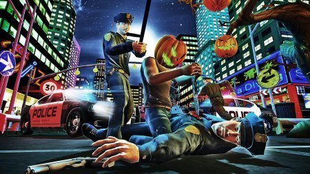 Halloween Robbery Crime City – это криминальный квест с тематическим уклоном. Ночь этого Хэллоуина запомнится всем жителям провинциального городка. Игровая сюжетная линия превратить вас в главу преступной группировки, наводящей ужас и творящей беззаконие на улицах города. Как настоящий мародер можно нападать на простых людей и другие банды, грабить и крушить все, причиняя колоссальные убытки. А сумев захватить все городские кварталы, можно вступить в смертельную схватку с представителями правопорядка и мафиози. Главная задача – передел сфер влияния в городе. Для этого используйте весь игровой автомобильный и оружейный арсенал, устраивайте ограбления банков и магазинов, работайте киллером, выполняя заказы богачей. Проходите игровые задания, получайте бонусы и городскую власть. Русский язык: неизвестно.