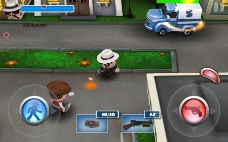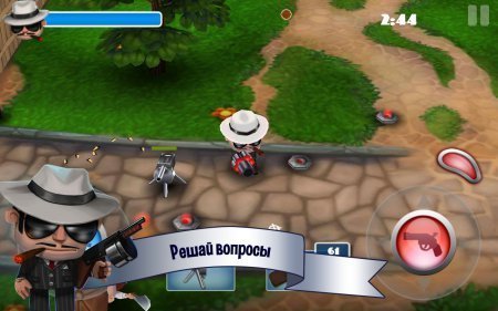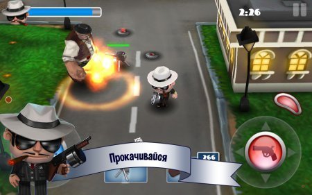 Mafia Rush – интересный мафиозный шутер на системе андроид, который можно управлять парой пальчиков, одним перетаскивать персонажа а вторым наводить прицел. Задача главного персонажа, как и любого из гангстеров, грабить различные банки выносить оттуда мешки с добычей, потом данные мешки практически с твоим богатством, необходимо защищать. В игре сохранены несколько режимов, к примеру, в одном из таких, нужно выбрать грузовики с денежками. Еще ты будешь оказываться в стычках между группировками мафии, в которых нужно продержать парочку волн нападок врага и само собой выжить. За полученные денежки ты можешь купить в магазине новенькое более серьезное скорострельное орудие. Игрушка русифицирована.