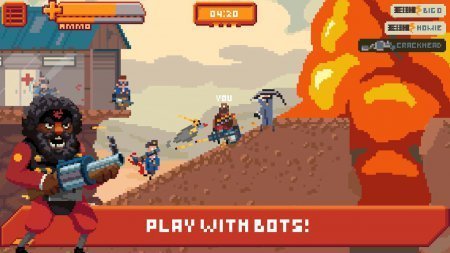 GANGFORT – классическая стрелялка для андроид устройств. Все события происходят в пиксельном мире. Игра предлагает выбор между девятью действующими лицами, которые отличаются боевыми навыками и тем, как выглядят. Вы действуете в составе банды. Выиграть сможете, только если будете истреблять всех врагов на пути в различных игровых локациях. Можно использовать как многопользовательский. так и одиночный режимы игры. Первый даст возможность поиграть с друзьями, а второй – проявить себя в схватке с искусственным разумом. Главное – уничтожьте врага и победа вам обеспечена. Русский язык: отсутствует.