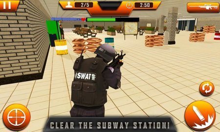 SWAT Train Mission Crime Rescu – превратись в бойца определенного подразделения по устранению террористов. В данном проекте тебе представится не легкая задача по зачистке террористов, которые напали на поезд и само помещение вокзала. Передвигайся по вагончикам перемещающегося поезда и помоги заложникам оказаться на жаленной свободе. Определи разумное положение и примени также и укрытие, чтобы устранить всех возможных террористов. Примени шикарную снайперскую винтовку и меть точно в голову, чтобы закончить задание. Передвигайся по разнообразным локациям и исполняй десять неимоверных заданий, используя для этого разностороннее орудие. Проект заманит тебя шикарным подвижным процессом игры и широким перечнем противников. Игрушка, увы, не русифицирована.