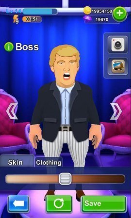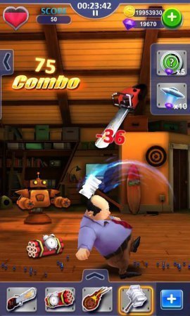 Whack the Boss – веселенький проект на системе андроид, в котором ты способен отомстить занозливому боссу. Отомсти злобному начальству, который всегда тебя обижает, применив для этого разнообразные орудия. Устраните главаря благодаря автомату, молотку, сюрикэту, бейсбольной битке, мече или бензопиле, ракете и не допусти ни единой возможности на его выживание. Используй различное орудие и не забывай его сочетать, чтобы достичь самого высокого результата и свергни босса. В данного роде проекте приготовлено четыре босса, внешность которого ты способен самостоятельно изменять по собственному желанию. Придумывай новенькие варианты устранения босса и принимай занимательные награды. Игрушка не русифицирована.