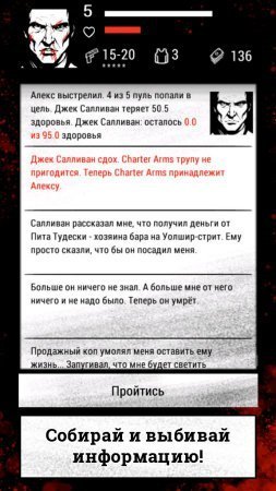 Blackwhite. A revenge quest / Blackwhite. История Мести -это своего рода ролевая текстовая игрушка, в которой ты выступишь в облике центрального персонажа по имени Алекс. Он постоянно был дружелюбным и законопослушным жителем. Но посте устрашающих событий, когда злобная мафия отняла весь бизнес и лишила жизни его супругу Натали, а в содеянном обвинили его и запекли за решетку на десять лет, герой вышел на дорожку мести. Ему уже совершенно нечего терять. Чтобы отомстить данный персонаж выходит на улочки и начинает тренировку, но на тех, кого не жалко так сказать, на местных отморозках, и только после этого он начинает проект мести необходимой мафии. Игрушка русифицирована.