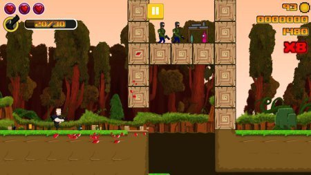 Get to da choppa – окажите помощь смелому персонажу данной игрушки достигнуть цели а также победить всех противников на вашем пути. Персонаж является солдатом спец назначения, у которого осталась не завершенная миссия, которую необходимо окончить, как бы трудно это не было. Передвигайтесь вместе с персонажем по множеству миров и устраняйте противников благодаря разностороннему орудию. Перескакивая сквозь платформа и обрывы, и обязательно подрывайте коробки с взрывчаткой, для того что бы убить еще больше противников с помощью одного взрыва. Игрушка доставить массу удовольствия своим разнообразным оружием, от пистолетиков до огромных пушек и винтовок снайперского назначения. В игровом процессе собирайте всевозможные укрепления и бонусы, с помощью который вы сможете скорее пройти самые опасные ступени. Игра не русифицирована.
