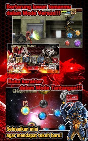 BIMA-X – новенький файтинг на базе андроид, разработанный по сценарию телевизионного шоу. В данном проекте тебе необходимо определить для себя персонажа из широкого разнообразия, которое туту есть. В проекте есть пара режимов игрушки – одиночный непосредственно против компьютера и игра по самому Bluetooth с дорогим товарищем. Определи тот режим, который тебе понравился и боритесь с серьезными персонажами в постепенных сражениях стремясь завоевать свыше тысячи побед. Еще игрушка подарит эмоции небольшими уровнями сложности от самых низких до очень-таки не простых, который направиться профессионалам в данном проекте. Испытай режим Challenge в котором тебе необходимо не просто победить в сражении, но также и изучить представленную карту кидая вызов каждый раунд, используя комбо удар в сражении с врагом. Руководи собственным персонажем благодаря кнопкам и стрелкам на дисплее твоего устройства.