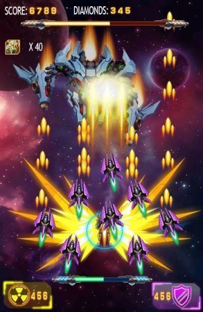 Война за Галактику – экшен космического плана, в котором тебе важно стать на защиту галактики, от неизученных пришельцев. В твоем владении реальный космический корабль, ты можешь поднимать уровень его орудия, копить определенные бонусы. В результате, когда ты доберешься до лимита, взяв очередное усиление, твой корабль, а какое-то время станет реальным роботом. Который светит лучами в разные бока, и сжигает противников на твоей дороге. В проекте доступно парочка типов кораблей, еще ты способен улучшать по ходу самого игрового процесса. Преимущества – масса испытаний с поощрениями и успехами. Противостояния за ведущие результаты – обязательно будь первым. Ясное сенсорное руководство. Самое серьезное и сильное орудие. Неимоверный перечень впечатлений от проекта. Неимоверная сцена космических баталий. Очень-таки реальные звуки.