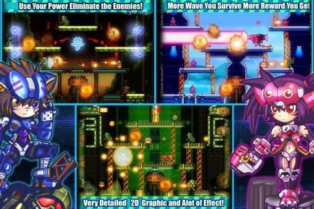 Metaloid : Reactor Guardian – игрушка в которой ты проследуешь в опасное приключение на предложенную планету Metaloid. В данном проекте тебе нужно копить капсулы энергии, которые должны собрать разваленный реактор единственный источник освещения на данной планете. Но совершить это совершенно не просто, капсулы размещены под охраной роботов. Определи одного из четырех киборг персонажей и иди в атаку с противниками. Каждый персонаж сохраняет собственную особенность, силу орудия и тактику самой обороны, так что сделай выбор сам с разумом. За каждый преодоленный уровень тебе будет предоставляться кредит, на который ты можешь улучшить собственного персонажа и его орудие. Преимущества – четыре киборг персонажа, четкая среда 2D, двадцать типов орудия, восемнадцать типов противников с удивительными умениями. Ведущая табличка лидера.