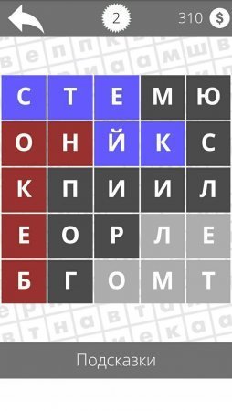 Здесь вы встретите массу интеллектуальных кроссвордов. Выберите понравившуюся тематику и приступайте к отгадыванию слов. Каждое из них скрыто где-то в игровой области. Её заполняют пустые квадратные ячейки, размеры которых составляют 4 на 4. Поиск спрятанного слова осуществляется с опорой на визуальное восприятие. Найдя его, коснитесь первой буквы и протяните палец так, чтобы дойти до конца позиции. По завершению каждого уровня вам будут начислены баллы. При помощи них можно открыть доступ к сложным уровням и интересным темам. В общем, увлекательное времяпрепровождение вам обеспечено, ведь ни одно слово в кроссворде не повторяется.Об имеющихся тематиках
