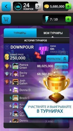 TETRIS Blitz – замечательный тетрис на систему андроид, от известной группы ELECTRONIC ARTS. Теперь известная всем игрушка стала более шустрее, интереснее и занимательнее. Так кА за ее создание взялась группа замечательных профессионалов, которая показала всему миру самые лучшие игровые хиты. Тебя ожидает красочная графика с неимоверно занимательным геймплеем. Поиграй и убедись самостоятельно.