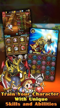 Puzzle Guardians – RPG на систему андроид, с частичками игрушки три в рядок, в которой тебе необходимо использовать собственные способности, для того чтобы помочь персонажу победить страшных монстров. Перемещайся по колдовскому миру игрушки, и нападайте на массу врагов, собирая про три и выше единых частички в рядок. Используй массу заклинаний, а также орудие путем сбора идеальных комбинаций. Веди собственных смелых людей только вперед и собирай самые длинные комбинации, не допуская монстров к победе. По преодолении игрушки поднимай и развивай собственных персонажей и получи в качестве приза многочисленные частички экипировки, а также орудия. Принимай участие в удивительных сражениях и раскрывай новеньких персонажей.