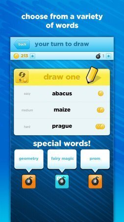 Draw Something – интересная и захватывающая игра для андроидов, которая знакома многим с самого детства - под названием «Крокодил». Играть в нее, вы можете вместе с другими игроками в режиме онлайн, применяя имеющиеся знания английского языка, или при помощи словаря (онлайн - переводчика). Перед вами на экране написано три слова, выбрав одно из них, изобразите его на дисплее планшет. Ваш соперник должен угадать это слово по рисунку, затем вы меняетесь. Теперь вам предстоит угадать, что нарисовал соперник. Это развлечение способно затянуть вас на несколько часов. С ним, вы сможете оттачивать навыки рисования. Не русифицирована.