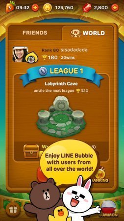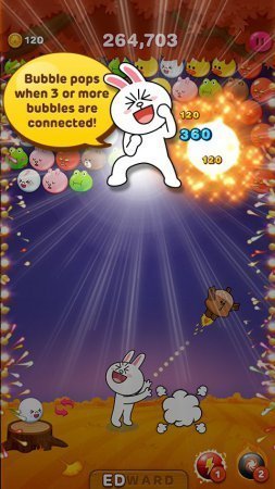 LINE Bubble – занимательная аркадная игрушка на базу андроид, в которой необходимо соперничать с товарищами. На игровом поле представлены цветные шарики. Тебе предоставляется рогатка с шаром. Запусти данный шарик вверх, чтобы получить цепочку из трех и выше шариков. Игрушка выступает замечательным тайм киллером, которая долгое время будет находится на твоем устройстве так как в нее можно играть долго. Игрушка увы не русифицирована.