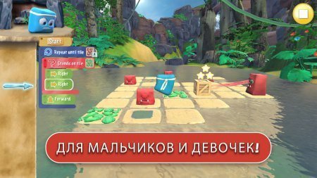 Box Island - обучающая игра, с элементами головоломки. Вы будете находиться в фантастическом мире. В нем живут существа весьма необычные, они выглядят как куб. Хоть игра и имеет необычный жанр, сюжет интересный и увлекательный. Нужно будет пройти большое множество уровней, и вам станут понятны все обстоятельства игры. К заданной точке вам нужно будет пройти по пути, состоящему из плиток. Путь, как и в любой запутанной игре, будет не простой. Охраняющие существа, западни - все это вам будет пытаться помешать. Но будут предметы, которые помогут. Принципы программирования лежат в основе игры, но при этом все доступно пониманию обычного человека и просто. Даже ребенку можно освоить эту необычную игру. Особым украшением является графика. Русский язык: нет