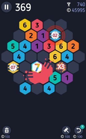 Make7 Hexa Puzzle – занимательная игрушка головоломка на платформе андроид, в которой тебе нужно перемещать по полю игры шестиугольники с циферками. На поле расположены шестиугольники, каждый из них хранит свое значение, твоей целью будет соединить их по три и выше и принимать новенькие знания. Продемонстрируй в реальности все личные навыки и разреши занимательные задачки семь и преодолей уровни. Хорошо просчитай каждое свое движение для того чтобы не оказаться в тупике. Собери необходимо количество очков и соперничай с товарищами за самые высокие показатели. Игрушка принесет удовольствие от минималистической графики и сложными уровнями, которые отнимут у тебя полную бдительность.