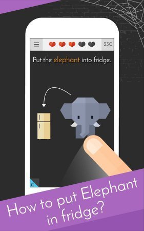 Tricky Test 2™: Think Outside – желаешь проверить собственную логику и мышление. Тогда это все легко. Все что тебе необходимо это скачать представленную игрушку, и насладиться массой уровней, в которой ответы будут довольно ясными, но не очень легкими. Тебе необходимо отправить слона в холодильник, и раскрыть массу прочих загадок, и все это на время и плюс применение жизни. За каждый не верный вывод ты будешь лишаться жизни, и когда они все пропадут, придет конец игре. Преимущества – масса интересных уровней, все задачки логического типа, нет русификации.