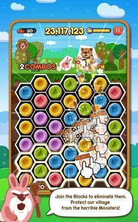 LINE Pokopang – изумительная головоломка на системе андроид с красивейшей графикой и хорошим геймплеем. Монстрики проникли в мир зверей. Они соединились во главе замечательного кролика по кичке Бони приняли решение устранить монстров, разрешая странные головоломки и разламывая одноцветные блоки. Игрушка легкая и занимательная, манит собственной простотой и индивидуальностью. Рисуй полосы по блокам единого цвета, так, как только таким образом ты можешь изгнать монстров.